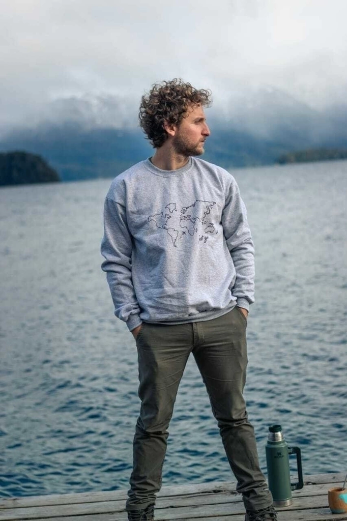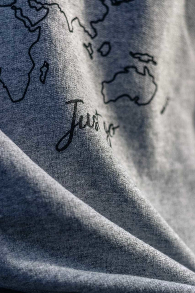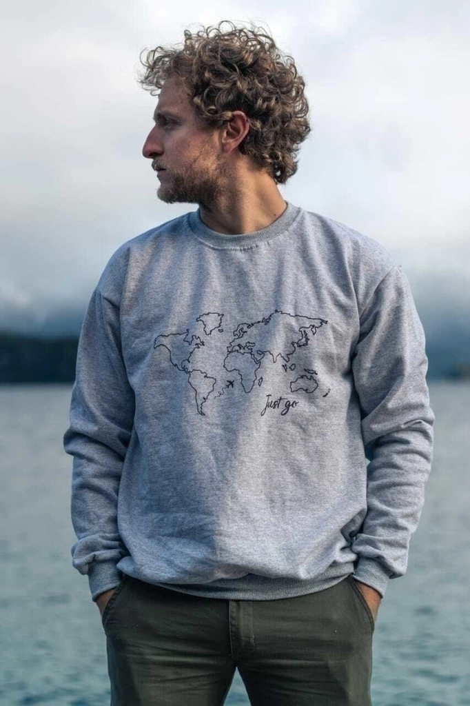 Buzo Mapamundi Just Go Gris Melange con Cuello Redondo