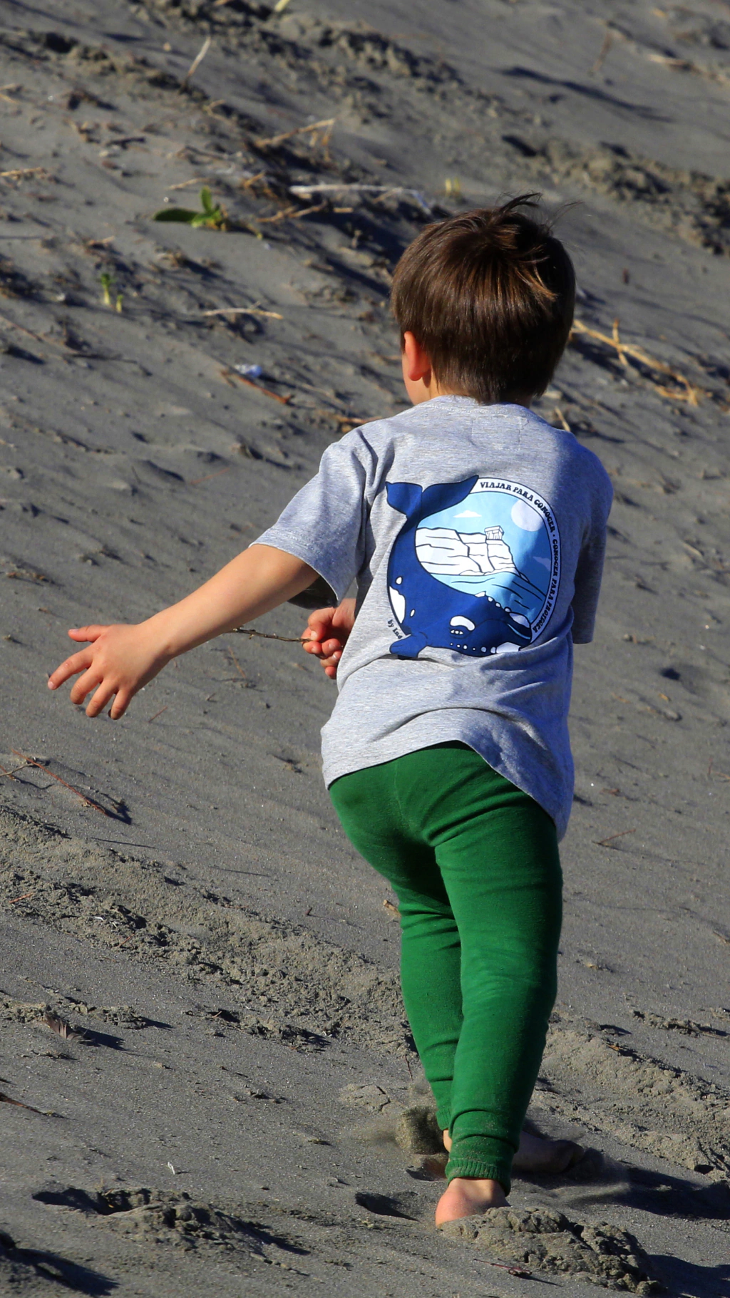 Remera indokids gris melange de 100% algodón con estampa del diseño exclusivo de la Cápsula Indochina + Instituto de Conservación de Ballenas. Comprando esta prenda donas el 25% a la ONG.