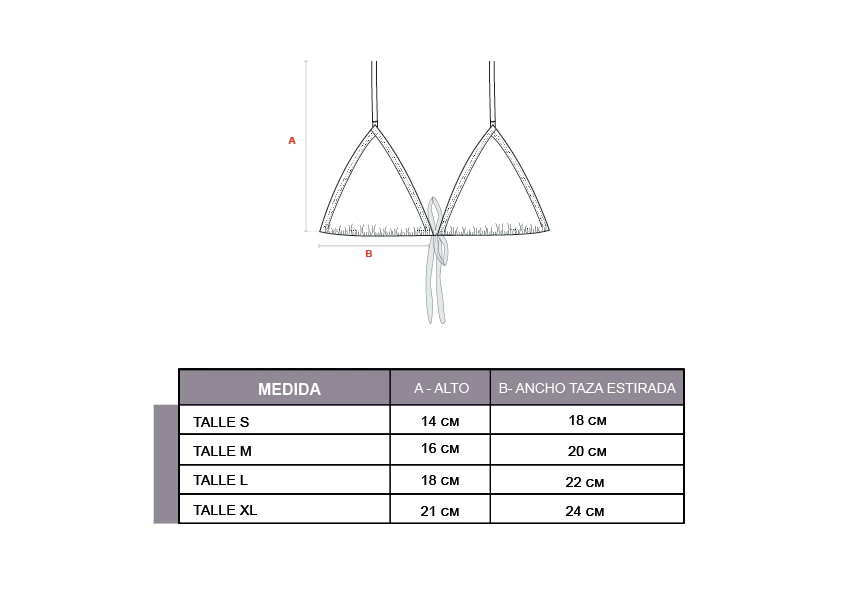 En las últimas imagenes podés encontrar la tabla de talles del corpiño y de la bombacha, las medidas son orientativas pero no exactas. Tanto la partes de arriba como la de abajo corresponden a los talles según las medidas expuestas a continuación, aún así, si tenés dudas entre dos talles, recomendamos elegir el más grande! pd: no te preocupes, todas nuestras prendas tienen cambio.