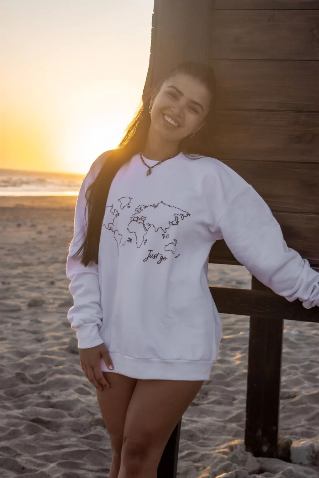 Buzo Mapamundi Just Go Blanco con Cuello Redondo