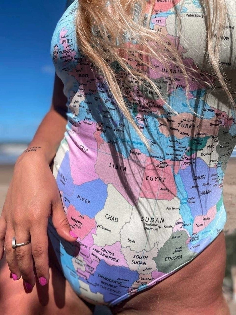Malla enteriza con nuestro diseño mapamundi en tonos pasteles y la parte de abajo vedetina. La enteriza está confeccionada en lycra tricot y luego sublimado nuestro clásico diseño mapamundi en tonos pasteles. La malla entera viene por talles: del S al XL con tiritas regulables y forrada por dentro (obvio).