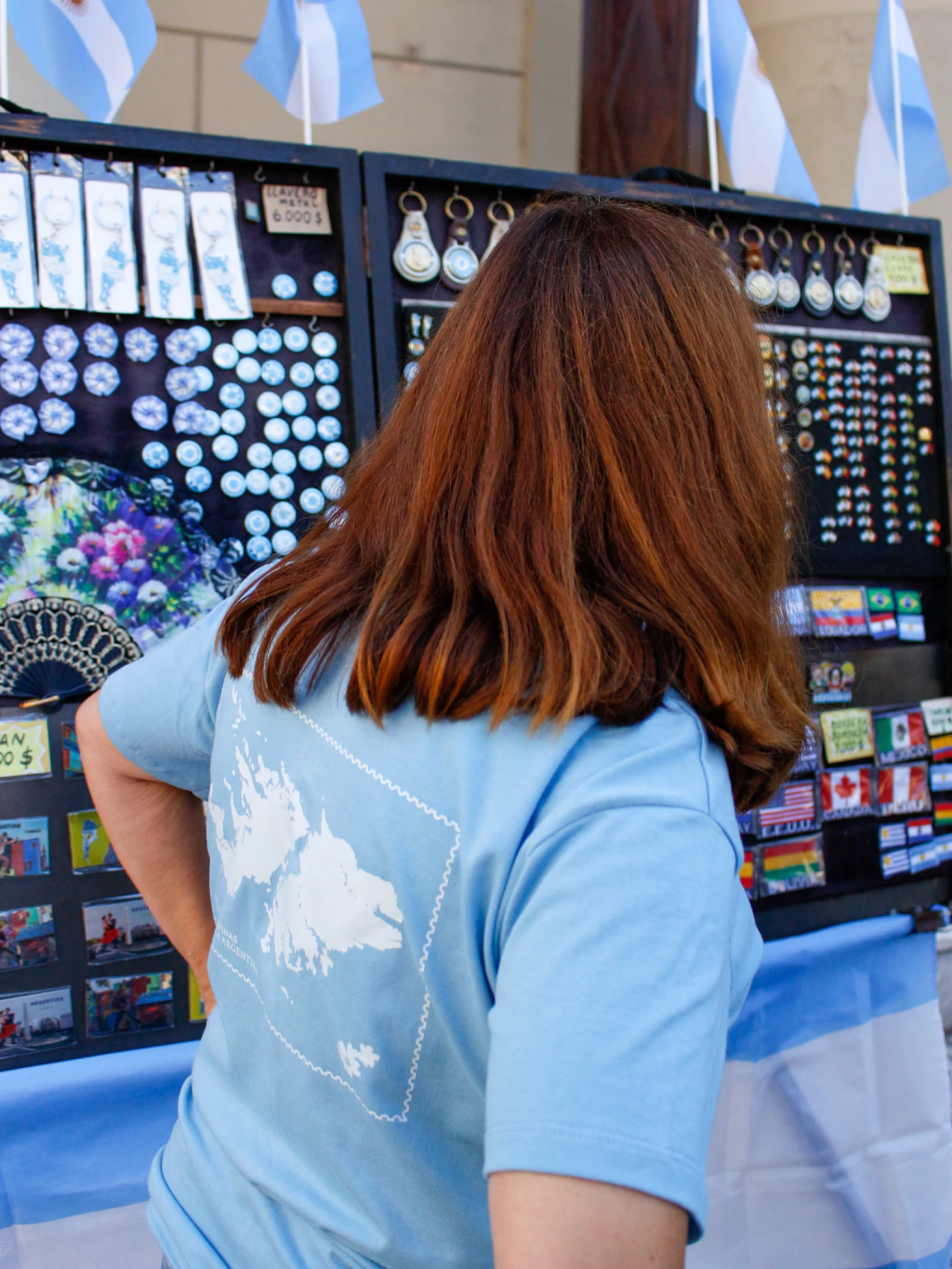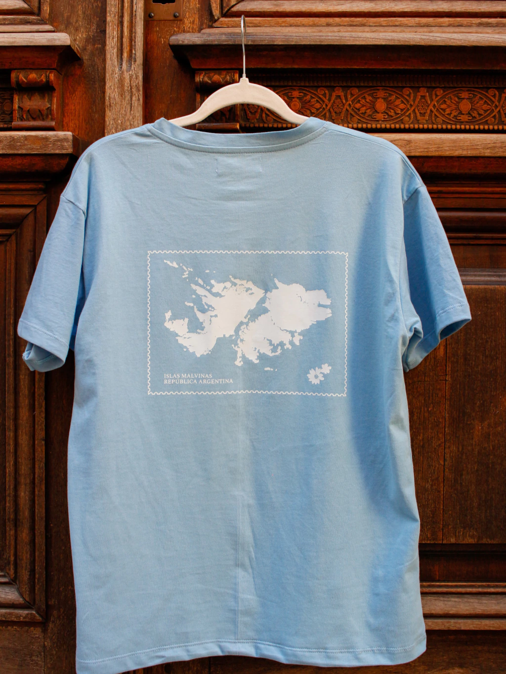 Remera 100% de algodón en color celeste. Está confeccionada para que sea súper cómoda y tiene el diseño de las ISLAS MALVINAS tipo estampita en la espalda. En la parte delantera posee en el centro la escritura Islas Malvinas con la flor nacional de las Islas. La calidad y los detalles son increibles <3