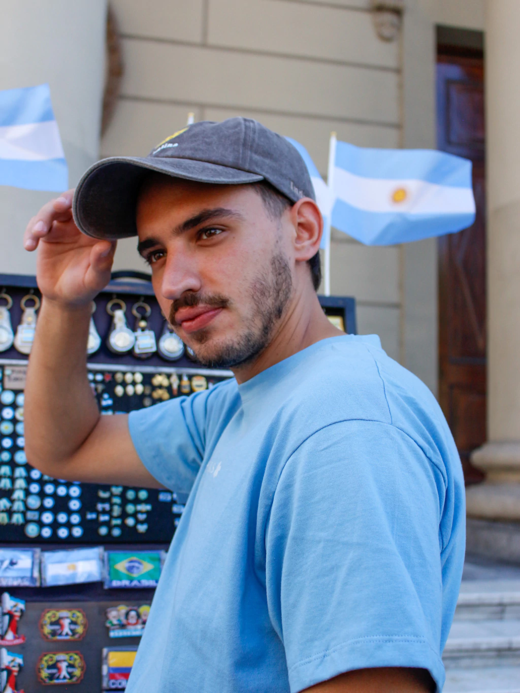 Remera 100% de algodón en color celeste. Está confeccionada para que sea súper cómoda y tiene el diseño de la REPÚBLICA ARGENTINA tipo estampita en la espalda. En la parte delantera posee en el centro la escritura de la República Argentina con la flor nacional del país. La calidad y los detalles son increibles <3
