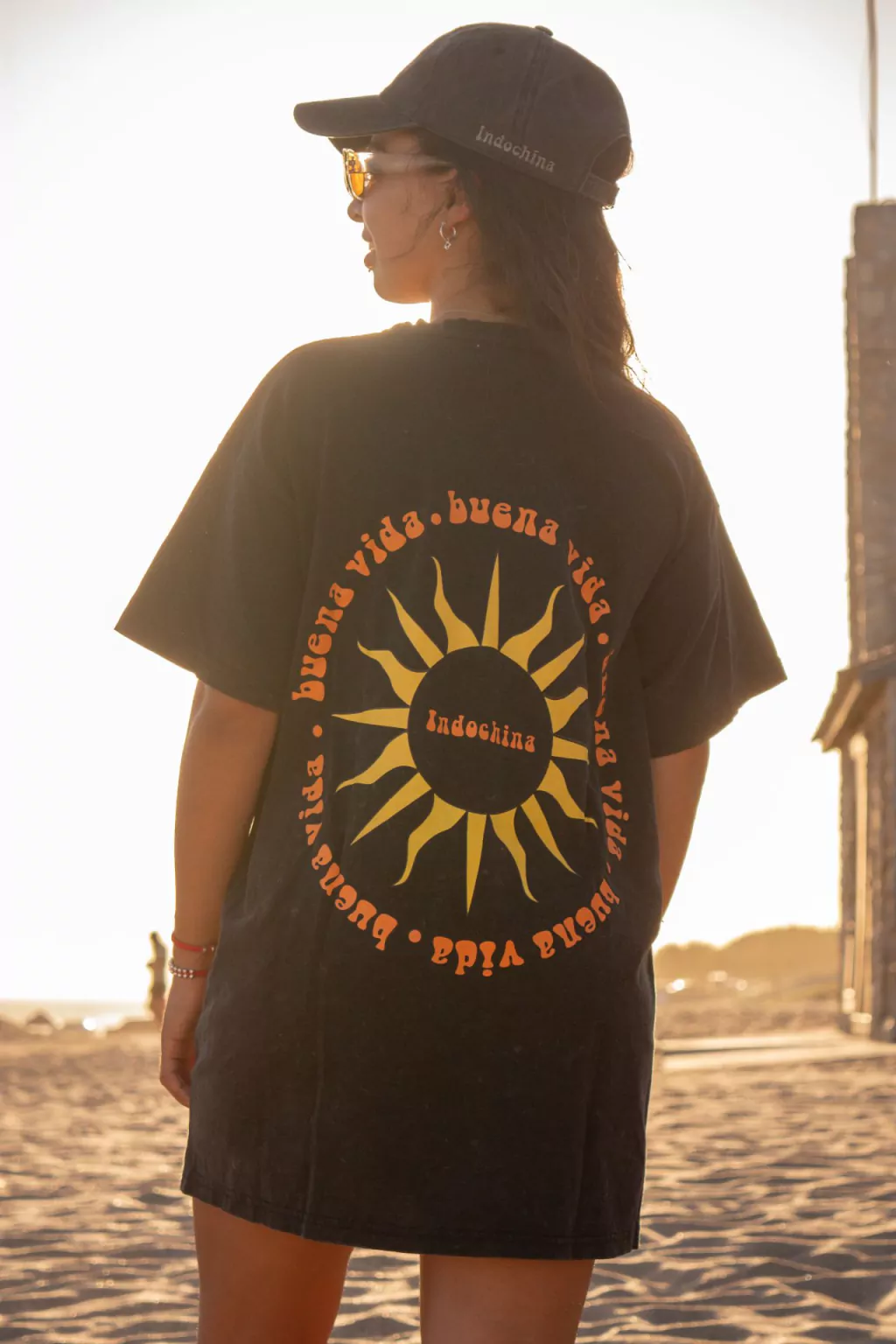 El diseño es de la nueva colección en la espalda el SOL BUENA VIDA en color naranja y amarillo. En la parte delantera posee el Sol con Indochina en color amarillo.